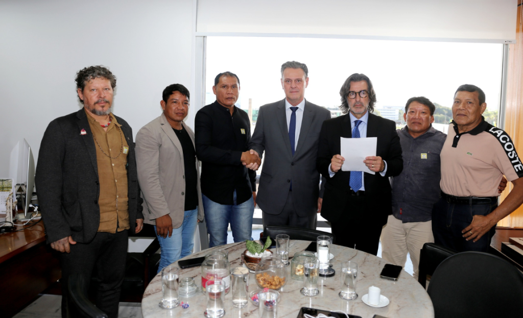 O ministro da Agricultura e Pecuária, Carlos Fávaro, se reuniu com lideranças indígenas Yawalapiti da região do Xingu que vieram a Brasília nesta quarta-feira (19) apresentar demandas para melhoria da produtividade no território que vem sofrendo com os efeitos das mudanças climáticas.
