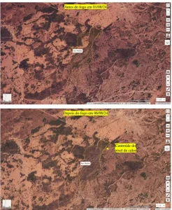 Segundo o laudo pericial, o fogo ocorreu entre os dias 4 e 5 de agosto de 2024 e atingiu a chamada área remanescente da Fazenda Paiol. As chamas foram identificadas inicialmente por satélites do sistema internacional FIRMS, com base em dados da NASA e do INPE, que confirmaram a presença do foco principal no interior da propriedade rural.
