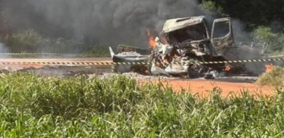 Duas pessoas, ainda não identificadas, morreram carbonizadas após um grave acidente entre uma caminhonete e um caminhão, na tarde de quinta-feira (22), na MT-220, em Tabaporã (a 643 km Cuiabá).