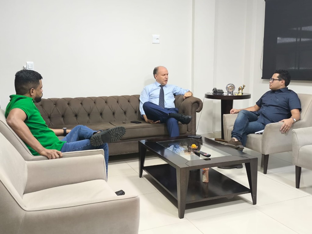 O presidente da Câmara de Campo Grande Epaminondas Vicente Neto, o Papy, e o vereador Professor Riverton receberam, na tarde desta terça-feira (25), o deputado estadual Júnior Mochi para debaterem pautas em prol da Capital.