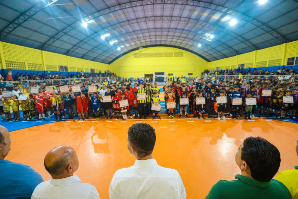 Gritos, arquibancadas lotadas e faixas de apoio às equipes marcaram a solenidade de abertura da 1ª Copa Madeirão de Futsal de Base, realizada na noite desta quinta-feira (24), no Ginásio Eduardo Lima da Silva (Dudu), localizado à avenida Jatuarana, na zona Sul da capital. O campeonato, que nasceu da iniciativa da Prefeitura de Porto Velho, por meio da Secretaria Municipal de Esporte e Lazer (Semes), e a parceria com a Federação de Futsal de Rondônia, tem o objetivo de impulsionar o futsal rondoniense.